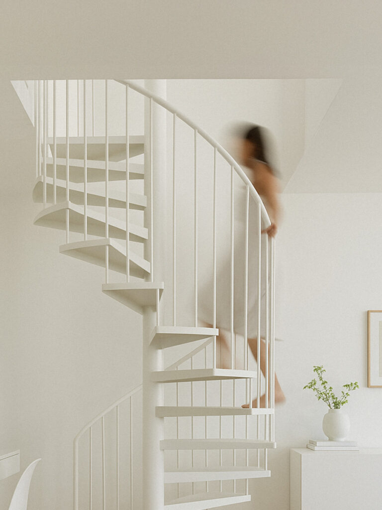 Cirkel es una escalera de caracol con diseño moderno y compacto. Formada con un mástil metálico o de madera y peldaños de madera o metal. Aporta solidez y funcionalidad. La barandilla metálica refuerza la estética ligera y contemporánea ofreciendo seguridad y transparencia visual. Es ideal para optimizar espacios reducidos sin perder elegancia y aportando estilo y practicidad.